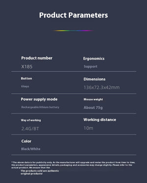 Njut av fördröjningsfri trådlös frihet med Bluetooth + 2.4G i två lägen. Ladda när som helst och spela bekvämt med tysta klick och RGB-belysning.